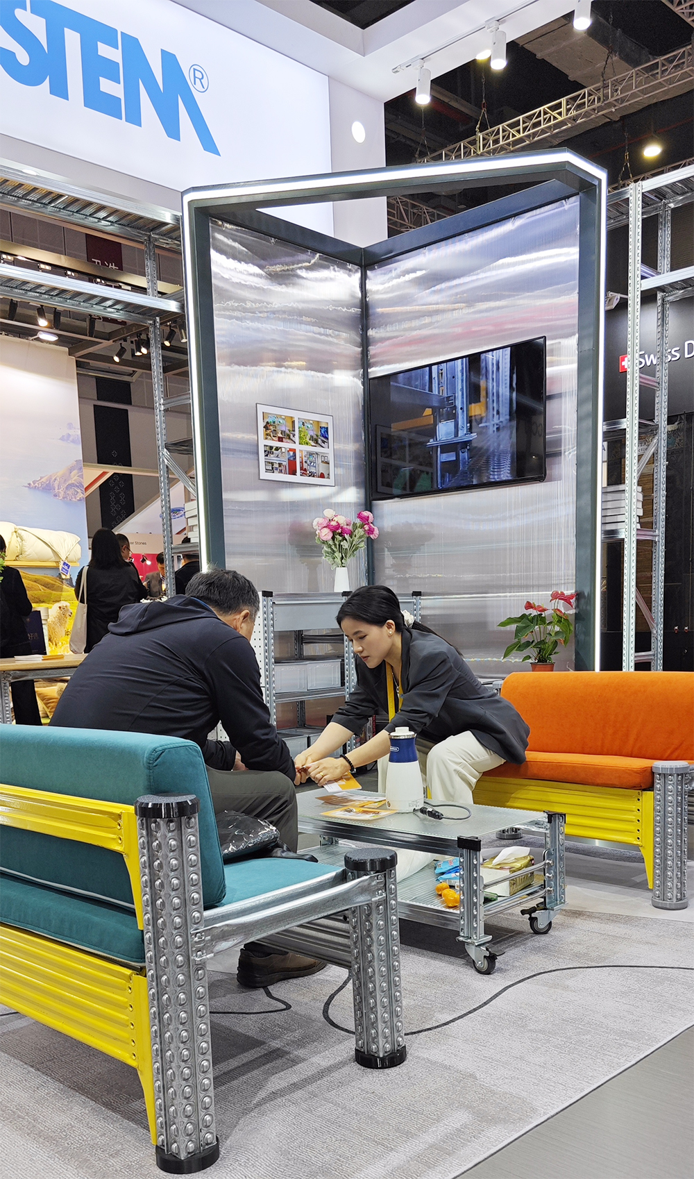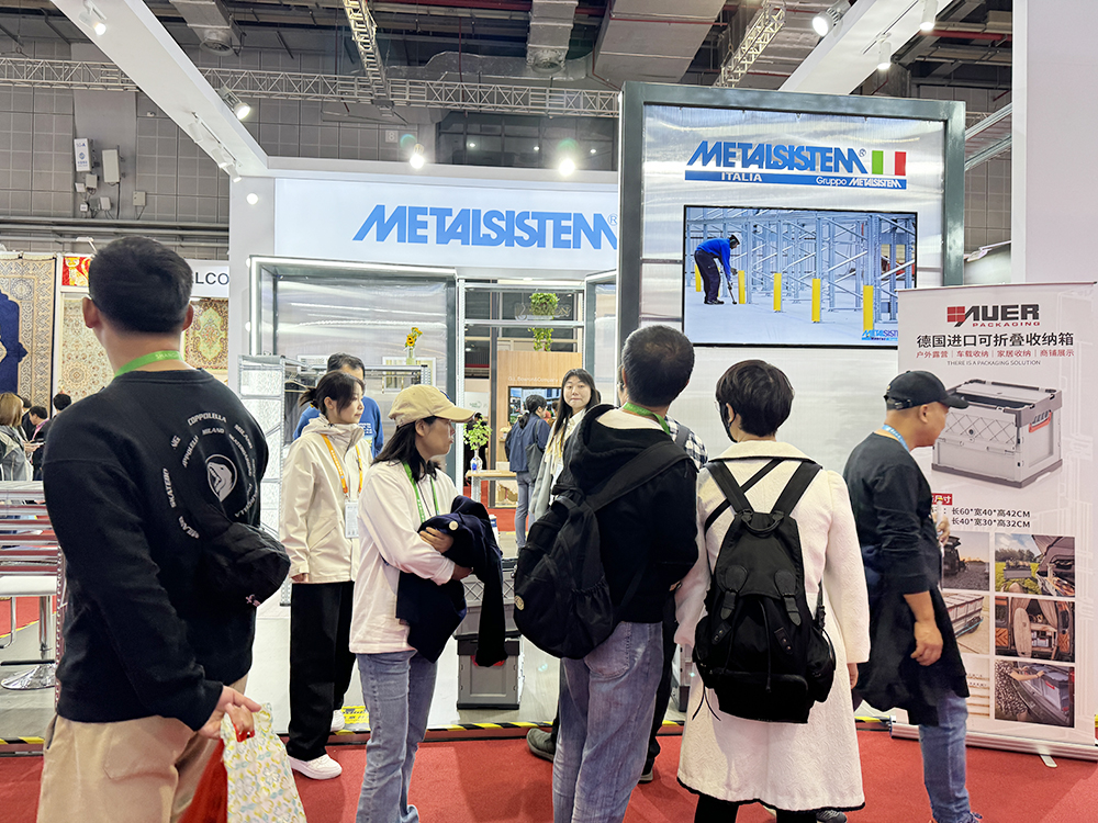 我司主要展示的是意大利金属家具(包括书架、置物架、挂衣架、沙发、茶几、桌子等),以及德国折叠箱。